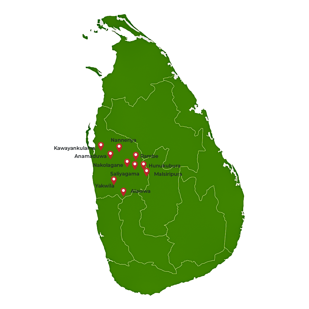 Our 450 acres of mango cultivation sites are located in the following area in Sri Lanka Alawwa, Yakwila,Saliyagama,Malsiripura, Hunukubura, Rambe , Nakolagane, Anamaduwa , Kawanyankulama, Nanneriya With our new mango farms expansion project our goal is to double the quantity we produce at the moment by year 2025.